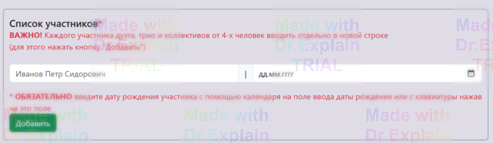 Участник обязан добавить в это поле всех участников номера!