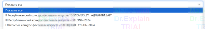 Сверху имеется выпадающее меню, при выборе мероприятия таблицы автоматически обновится: