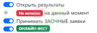 ОНЛАЙН/ОФЛАЙН ФЕСТ: если ВЫКЛЮЧЕНО, то фест ОНЛАЙН, если ВКЛЮЧЕНО, то фест ОФЛАЙН.